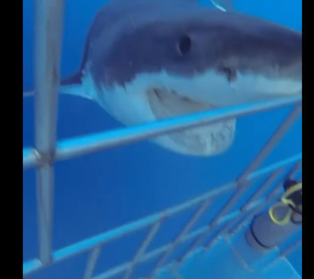 Um grupo de mergulhadores viveu momentos de tensão ao ser atacado por um tubarão-fêmea . Eles estavam dentro de uma gaiola de proteção estudando a vida dos animais e mesmo assim se tornaram alvo. Ninguém se feriu durante o ataque.