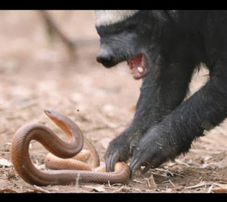 Um texugo de mel faminto e uma cobra toupeira destemida estão em uma batalha mortal, com a sobrevivência em jogo. Ambos os animais sabem o suficiente para atingir o ponto fraco um do outro: a cabeça. A luta é feroz com modidas na cabeça por ambos.