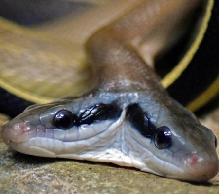 Uma cobra de duas cabeças cujos membros trabalham de forma independente e competem por comida chamou a atenção dos especialistas em vida selvagem. O animal foi encontrado na floresta Dhenkikot, no santuário de vida selvagem Keonjhar, em Odisha, leste da Índia. Informações do Metro.