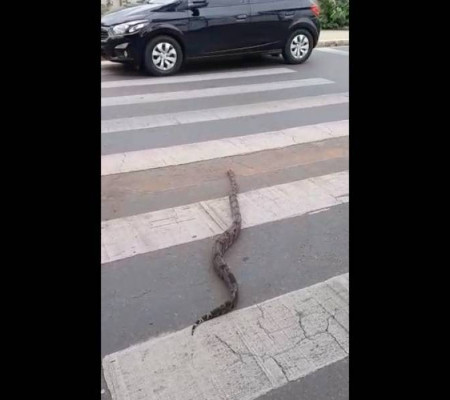 Imagine estar caminhando e de repente se deparar com uma cobra muito bem-comportada que atravessa a avenida na faixa de pedestre?