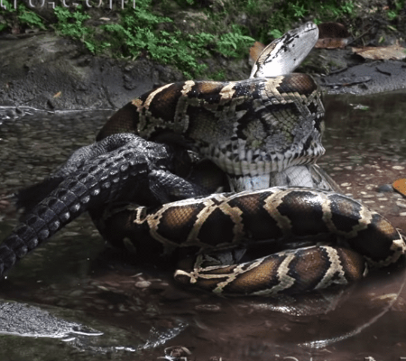 Um vídeo filmado por Heiko Kiera aka Ojatro na Flórida mostra a batalha entre uma cobra Píton e Jacaré.