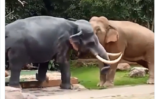 Um dos maiores mamíferos, um elefante não gostou de uma estátua igual a si mesmo no Parque Khao Yai, localizado na Tailândia. Ao cruzar com a escultura, o animal teve um ataque de fúria. Técnicos do local afirmaram que ele pensou que se tratava de um "invasor".
