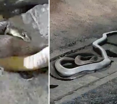 Duas cobras decidiram "sair no tapa" em cima de uma tampa de esgoto em plena cidade, onde pessoas testemunharam o caso e acionaram as autoridades responsáveis.
