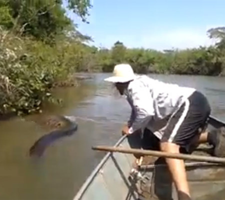 Um vídeo ganhou muitas visualizações nesta semana no Twitter. A gravação mostra um grupo de pessoas em um barco tentando retirar uma gigantesca e pesada sucuri de um rio. O vídeo já começou a ser noticiado em vários sites de notícias internacionais.