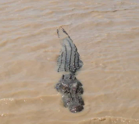 No ataque um dos enormes jacarés passava pelo local, e deu o bote "rodopiando', com sua presa. | Foto: Reprodução