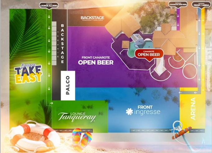 A grande novidade é a barraca Take it Easy, um espaço diferenciado que funcionará das 14h às 22h. Este último espaço é integrado ao Lounge Alludra Tankeray, equipado com open b ar premium de diversas bebidas, como vodka, uísque e gim.