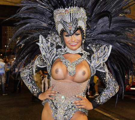 “É a primeira vez que desfilo com os seios de fora. É uma liberdade e estou gostando bastante dessa sensação. Estou sem vergonha e sem medo de ser feliz”, brinca ela, que desfila desde os 13 anos de idade.