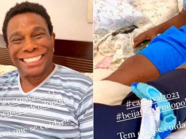 “Levei um tombo na semana passada. Fui um ‘cadinho’ lá no nosso camarote, do meu sobrinho, Gabriel Davi. Eu tinha tomado um tombo, a perna voltou a inchar. Mas, estamos aí. Estou me recuperando, pra segunda. Segunda-feira estamos em pé, segunda o couro vai comer, quinta escola [a entrar na avenida]”, contou o intérprete, em uma publicação em suas redes sociais.