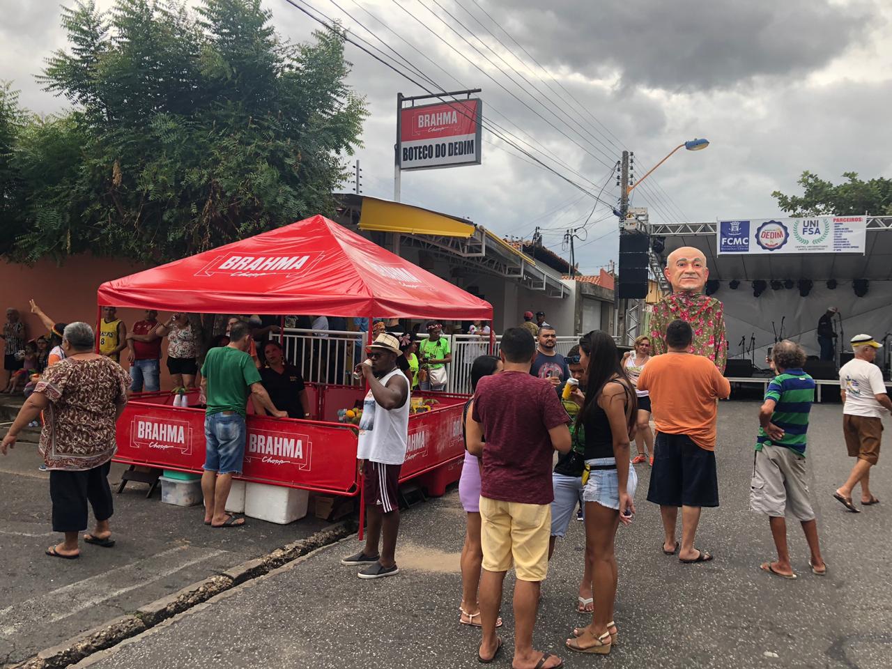 A ameaça de chuva não dispersou os foliões do Bloco do Dedim, que começaram a concentração às 16h. Com direito a um boneco de três metros representando Dedim, o dono do bar que deu origem ao Bloco do Paçoca e do Dedim, a comunidade do bairro Saci, zona Sul de Teresina, caiu na folia em grande estilo.