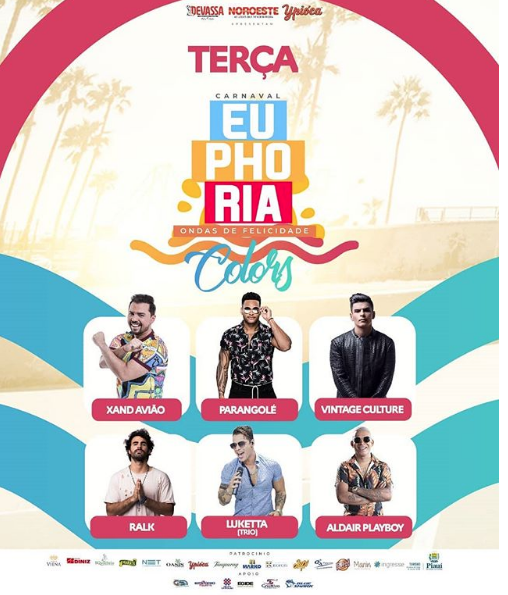 O maior Carnaval do litoral do Brasil chega ao quarto e último dia de folia nesta terça-feira (05/03), com o tema Euphoria Colors e para fechar com ‘chave de ouro’ os foliões vão curtir uma noite com muito forró, pop, funk e eletrônica ao som de grandes músicos como Xand Avião, Parangolé, Vintage Culture, Ralk, Luneta e Aldair Playboy.