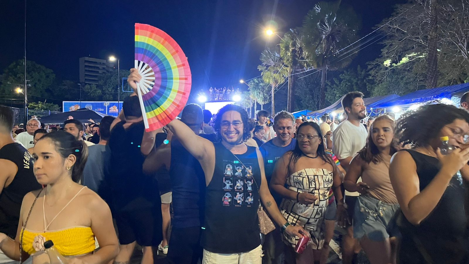 Foliões de diferentes bairros da capital ocuparam a avenida desde as primeiras horas da noite para acompanhar a apresentação da cantora baiana. Além do público local, o evento também atraiu pessoas de cidades do interior do Piauí e do litoral, além de visitantes vindos de outros estados, que aproveitaram a prévia carnavalesca em Teresina. Kleber Andrade saiu de Parnaíba para acompanhar de perto o show de Claudia Leitte em Teresina, nesta sexta-feira (16). Fã da cantora desde a época do Babado Novo, ele apostou em um look personalizado em homenagem à artista.