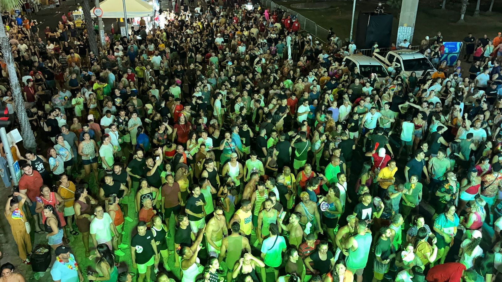 Durante o percurso do trio, era possível ver famílias, grupos de amigos e turistas acompanhando o show, reforçando o caráter popular da festa.