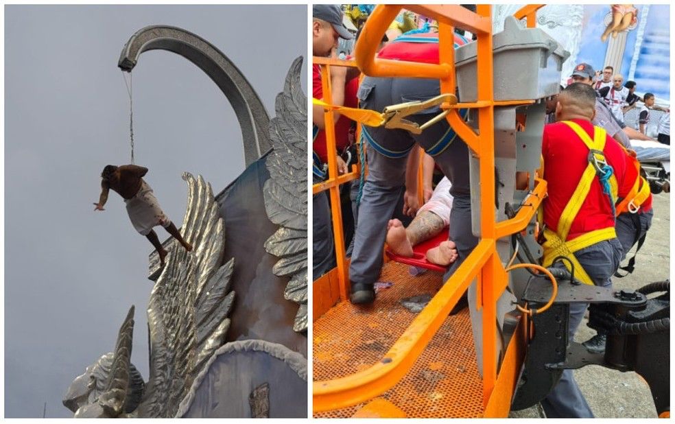 Destaque da Gaviões da Fiel que estava pendurado passa mal e é socorrido (Foto: Reprodução)