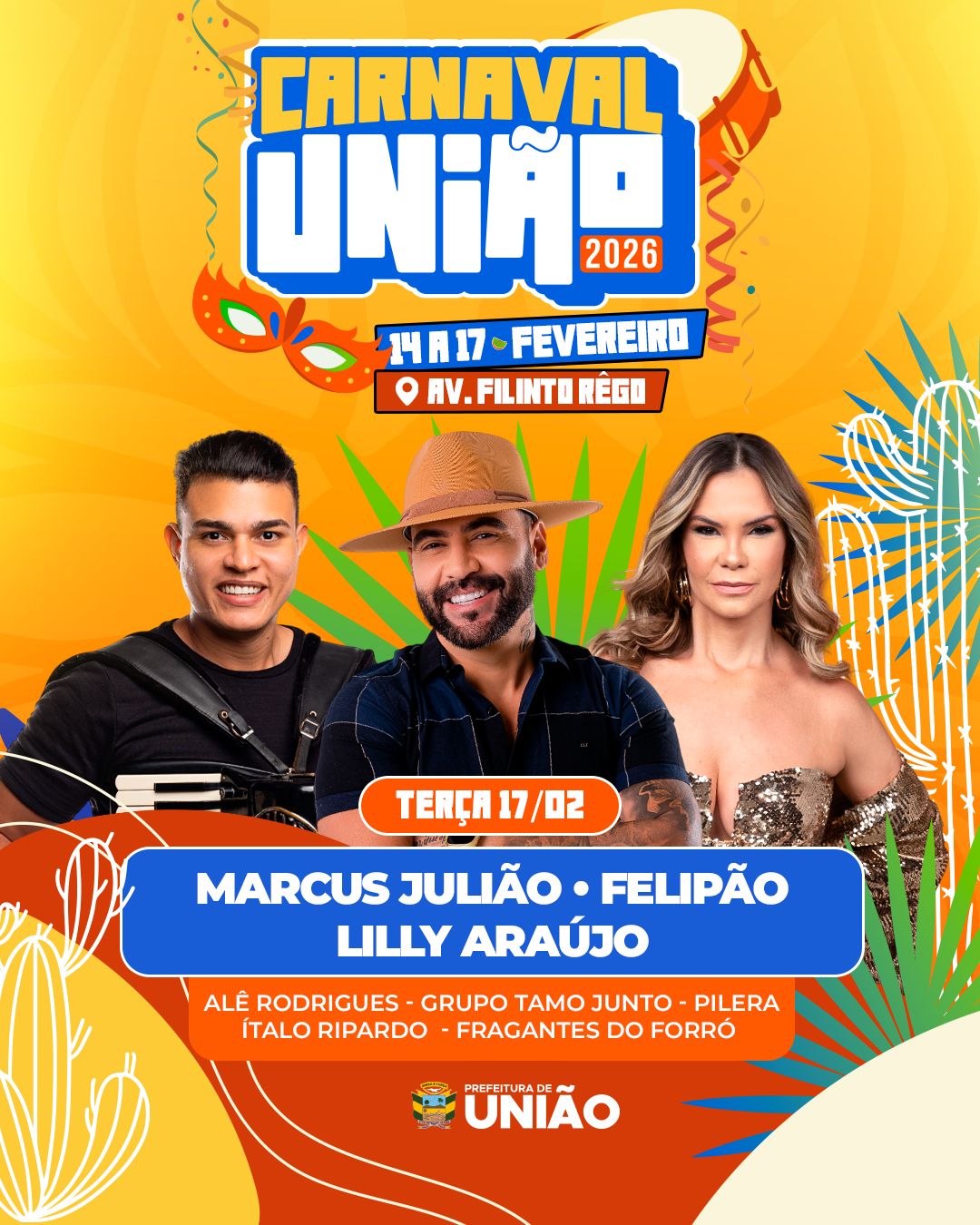 O Carnaval de União 2026 começa neste sábado (14) com shows musicais, arena de som automotivo, programação infantil e estrutura organizada em diferentes pontos da cidade. A Prefeitura de União reforçou que o evento contará com orientações voltadas à segurança, saúde e organização dos espaços públicos.