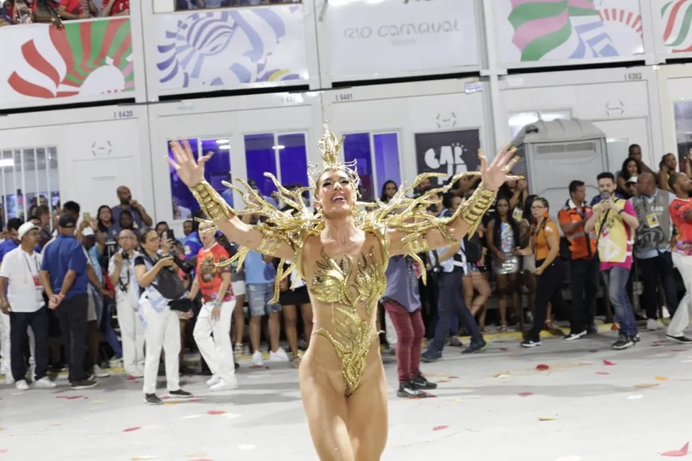 "Estou muito ansiosa, a gente faz bastante oração. Que a gente leve alegria para as pessoas, energia positiva, animação. Estou de ouro para trazer muito brilho para a Sapucaí. O Carnaval de Salvador não tem tanto peso. Aqui a gente tem que fazer bonito!", afirmou a dançarina.