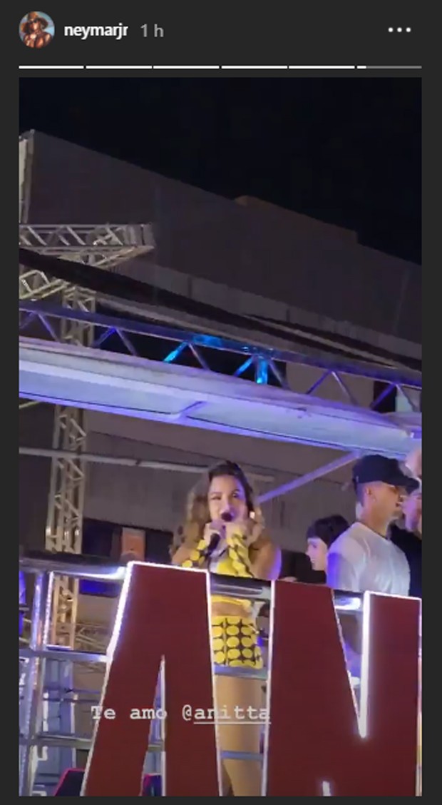 O craque do Paris Saint-Germain e da Seleção Brasileira, que está em um camarote VIP, chegou a filmar o trio de Anitta, onde Marquezine foi fotografada e filmada descendo até o chão enquanto dançava muito!