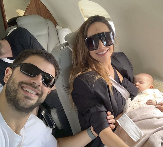 O casal fez a ponte aérea de São Paulo para o Rio de Janeiro em vôo privado, em jatinho. Logo que chegaram no aeroporto, na capital fluminense, sorriram para os paparazzi. No entanto, quem chamou atenção foi a pequena Zoe, que estava com óculos escuros. Na madrugada deste domingo (3), a apresentadora desfilou pela primeira vez como Rainha de Bateria da Gaviões da Fiel no Sambódromo do Anhembi, em São Paulo. Será sua primeira vez desfilando depois de dar à luz sua primeira filha, Zoe, nascida em novembro do ano passado.