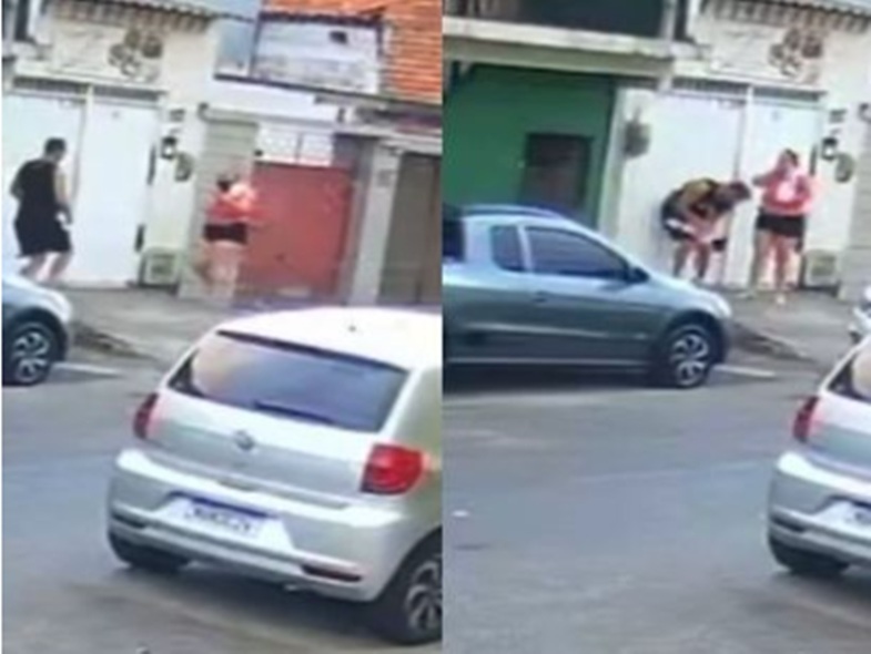 Imagens do momento mostram a mãe correndo com o filho nos braços e pedindo socorro ao policial, que rapidamente assumiu a situação e conseguiu reverter o quadro.