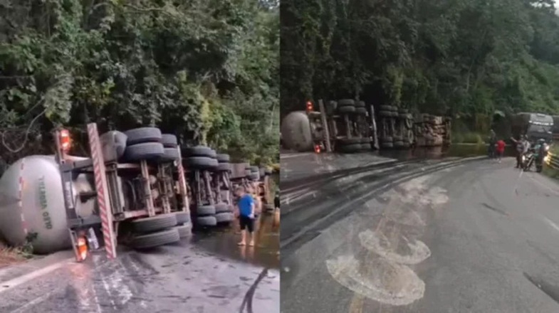 As causas do tombamento ainda não foram esclarecidas. As autoridades seguem investigando as circunstâncias do acidente para entender o que provocou a perda de controle do caminhão.