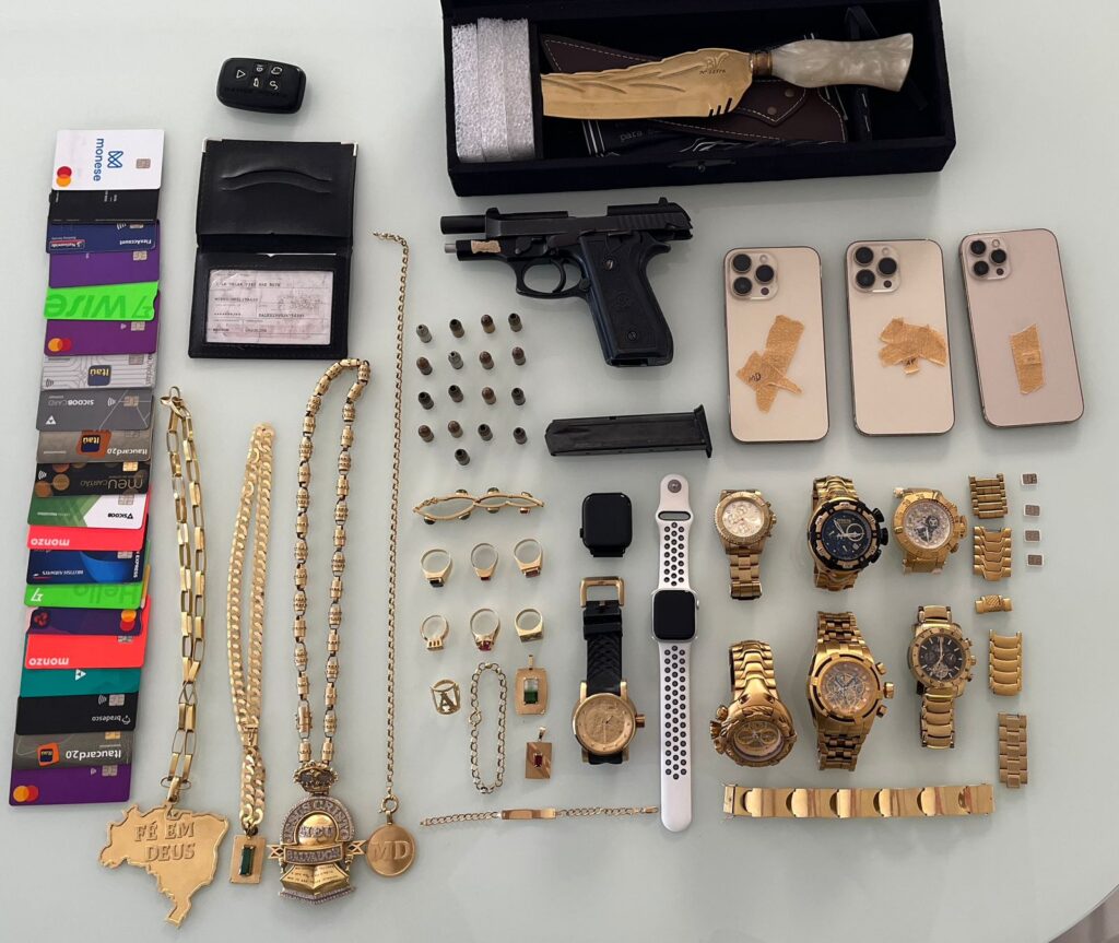 Policaiais apreenderam joias, cartões de crédito, arma e celulares | Foto: Divulgação/PCCE
