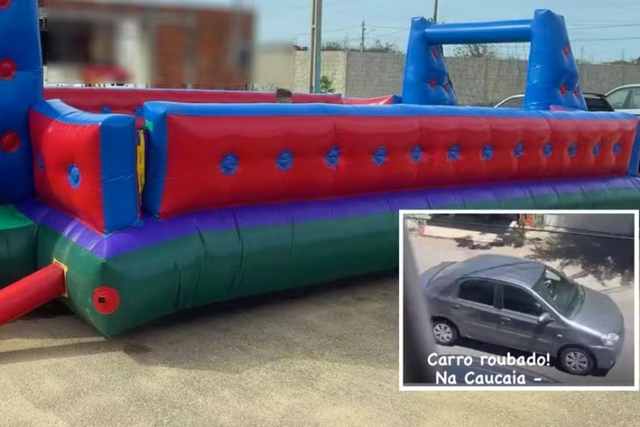 Criminosos armaram uma emboscada para atrair um empresário locador de brinquedos infláveis e roubá-lo. O homem foi contratado para uma festa, mas ao chegar no local, foi feito refém e teve o carro e os brinquedos roubados, além de fazer transferências via Pix sob ameaça dos assaltantes. O caso aconteceu na cidade de Caucaia, região Metropolitana de Fortaleza, no último sábado (14).