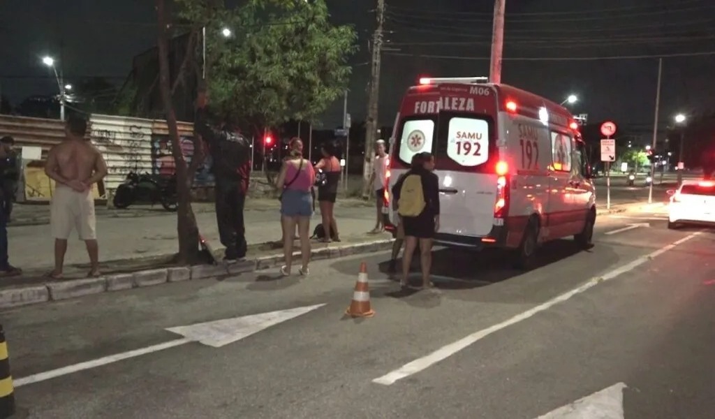 Um acidente de trânsito envolvendo uma moto e um carro ocorreu no cruzamento das avenidas Fernandes Távora com Augusto dos Anjos, na região da Parangaba, em Fortaleza.
