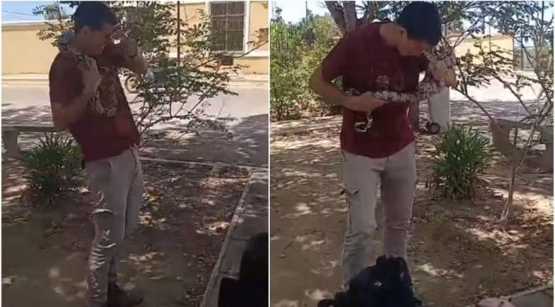 Jiboia morde e se agarra a rosto de estudante em universidade no Ceará; vídeo