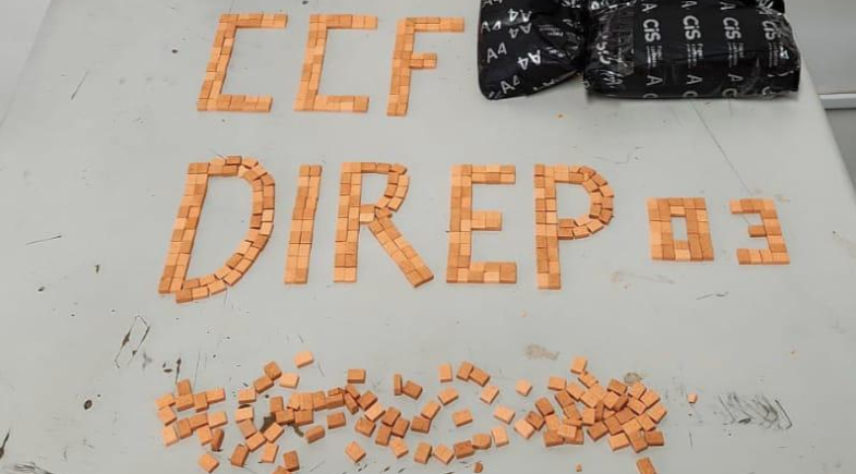A droga, que foi enviada do Rio de Janeiro/RJ, foi encontrada após indicação dos agentes caninos da Receita Federal, Aegon, Bachar, Ithor e Saymon.