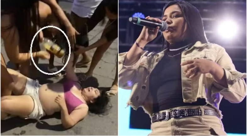 Cantora é derrubada e tem testa cortada por gargalo de garrafa; imagem é forte