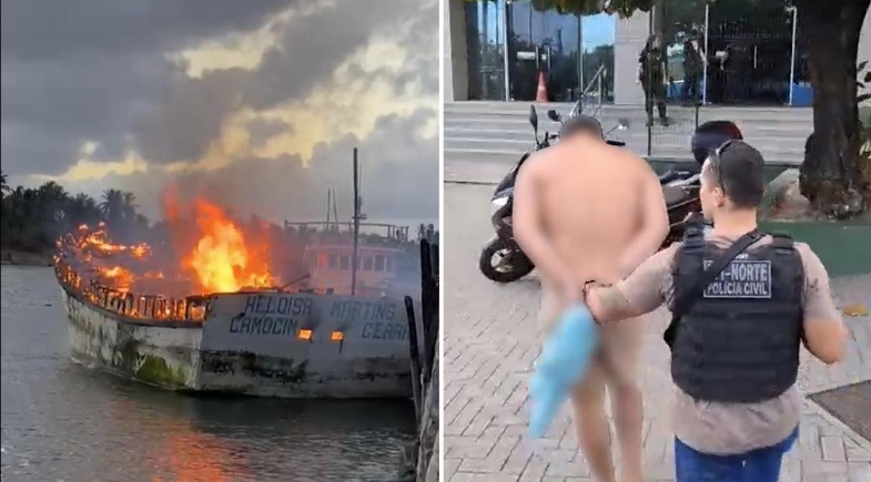 Na Delegacia, o suspeito foi autuado em flagrante pela Polícia Civil pelos crimes de integrar organização criminosa, incêndio e extorsão. Outros três suspeitos de participar do incêndio ao barco foram capturados. Duas prisões ocorreram em Itarema e uma na Barra do Ceará, em Fortaleza. O trio também foi autuado por integrar organização criminosa, incêndio e extorsão.