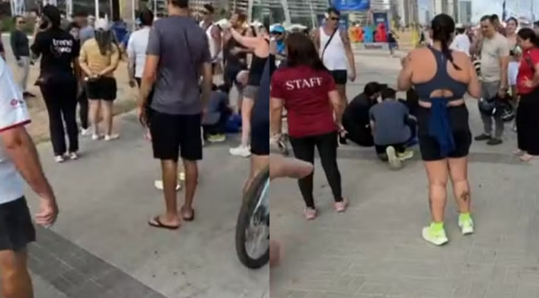 Uma turista de 74 anos, natural de Salvador, sofreu traumatismo craniano após ser atropelada por um ciclista no calçadão da Avenida Beira-Mar, em Fortaleza (CE), neste domingo (25). Segundo informações preliminares, o responsável pelo acidente participava de um "racha" (corrida clandestina) com outros jovens no momento da colisão.