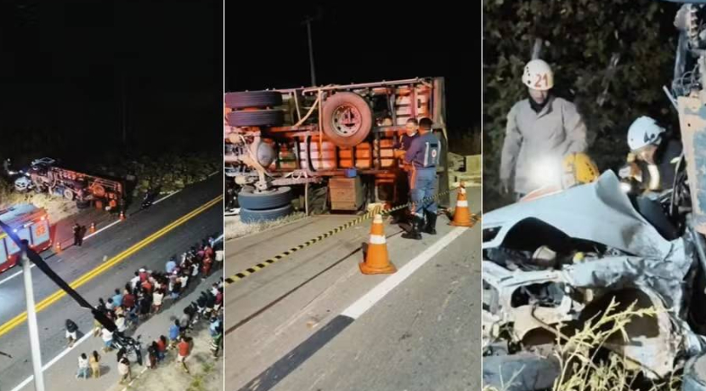 Um acidente envolvendo um carro de passeio e um caminhão deixou seis pessoas da mesma família mortas, na noite desta sexta-feira (4), no município de Tamboril, no interior do Ceará. O veículo de cargas foi atingido frontalmente e tombou com o impacto, de acordo com o Corpo de Bombeiros.