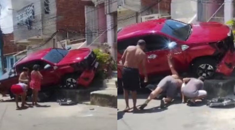 O idoso disse apenas que perdeu o controle da direção e colidiu contra a moto. Com a violência do impacto, a Hilux subiu na calçada. O motociclista atingido ficou preso sob o veículo.