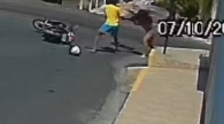Uma mulher reagiu a uma tentativa de assalto e impediu que dois criminosos levassem a moto que ela conduzia no bairro Domingos Olímpio, em Sobral (CE). O caso aconteceu na tarde desta terça-feira (7) e foi registrado por uma câmera de monitoramento de uma residência.