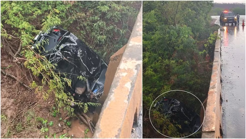 A passageira de um carro morreu após o veículo perder o controle e cair de cima de uma ponte de cerca de 7 metros de altura, na CE-293, no município de Milagres, no interior do Ceará, na manhã desta terça-feira (23).