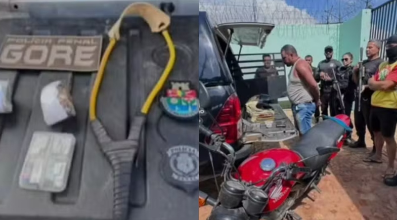 Durante a ação, os policiais penais do Grupo de Operações Regionais (Gore) flagraram o momento em que Eliseu usava um estilingue para tentar arremessar pacotes para dentro do presídio contendo 50 gramas de maconha, comprimidos, isqueiro e dinheiro. A prática é conhecida popularmente como "rebolo".