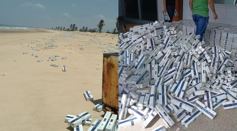 A Polícia Militar apreendeu nesta quinta-feira (11) 2.020 caixas de cigarros contrabandeados espalhadas por 2 km da orla da Praia de Capim Açu, em Paraipaba, na Região Metropolitana de Fortaleza (RMF).