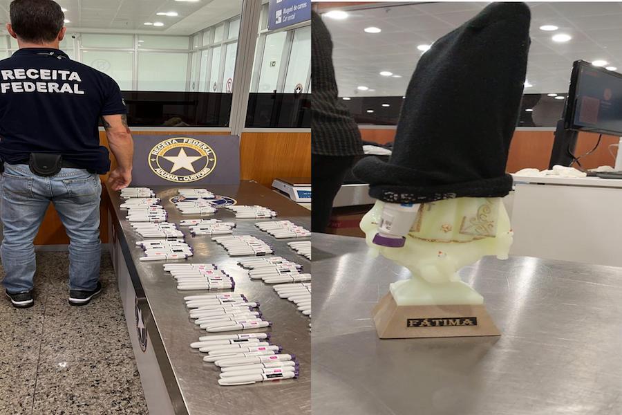 No sábado (20), um passageiro vindo da Holanda, em um voo operado pela Air France, escondia 45 canetas de Mounjaro no forro da mala. Já no domingo (21), a fiscalização identificou uma passageira que desembarcava de Portugal, em voo da Latam, carregando 57 unidades do medicamento escondidas entre roupas e dentro de imagens de santos.