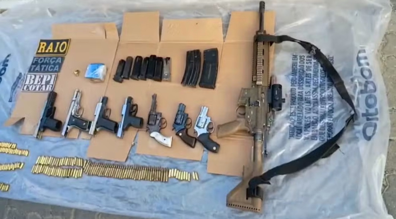 No local, foram apreendidos fuzis, pistolas, revólveres, granadas e um veículo que teria sido usado pelos criminosos durante o ataque. Todo o material foi encaminhado para a Delegacia Regional de Canindé, que conduz a investigação.