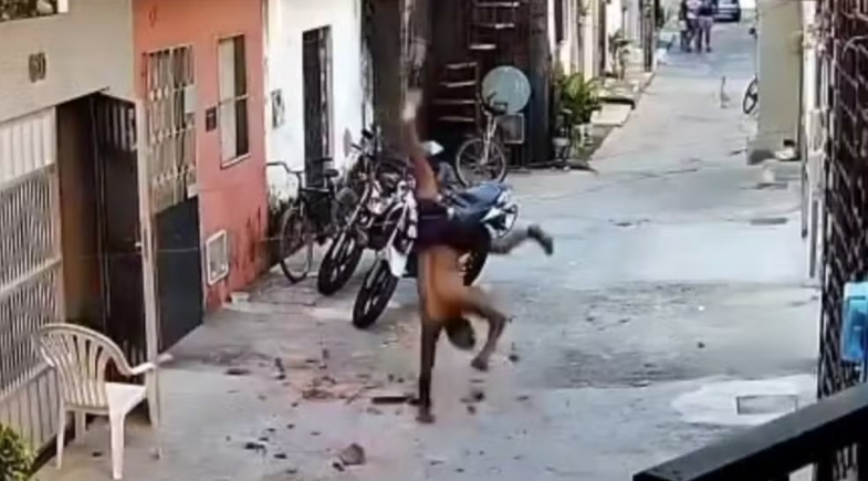 Um homem de 25 anos caiu do telhado de uma residência quando tentava fugir de policiais no Bairro Barra do Ceará, em Fortaleza, na tarde de quinta-feira (29). A queda foi flagrada por câmeras de segurança; com o impacto, o suspeito sofreu ferimentos no corpo e um corte na cabeça.