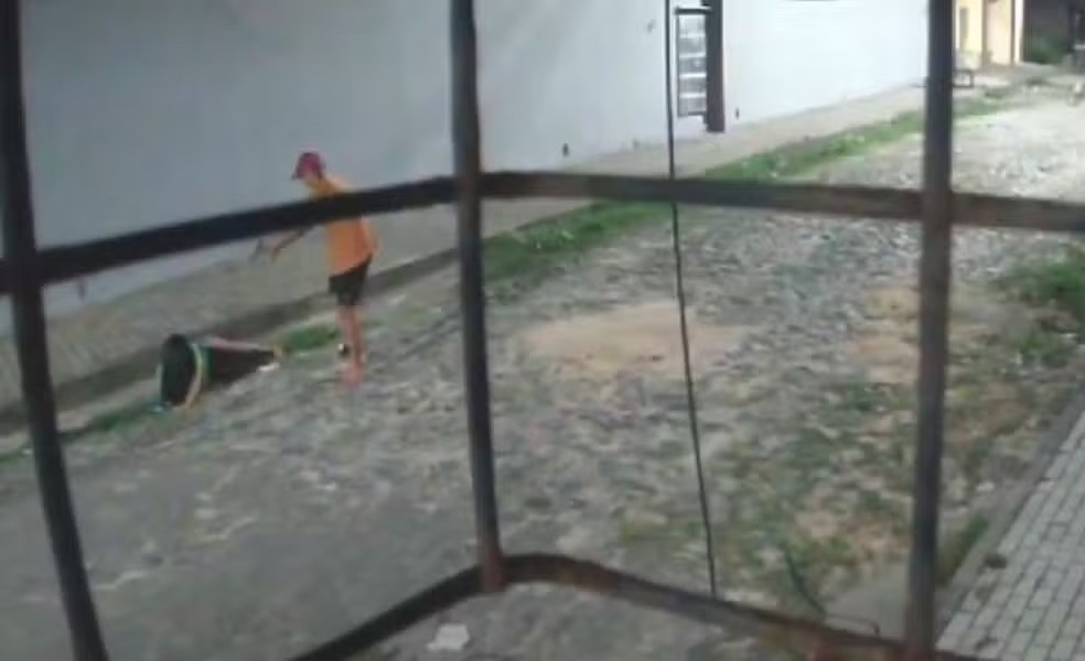 O caso aconteceu por volta de 1h20 do último sábado (15) e toda a ação foi captada por câmeras de segurança. Nas imagens, é possível ver pelo menos cinco pessoas correndo, sendo quatro homens e a mulher.