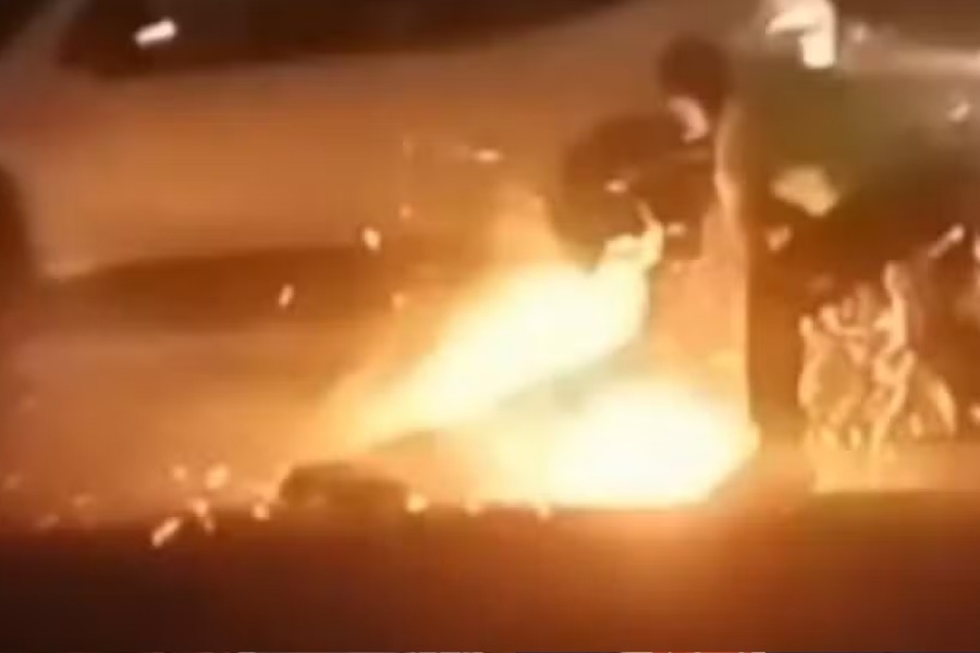 Devido ao impacto, a moto derrapou na via, esquentou e gerou o incêndio ao entrar em contato com o combustível. As chamas atingiram o homem, socorrido por populares que usaram um extintor para cessar o incêndio.