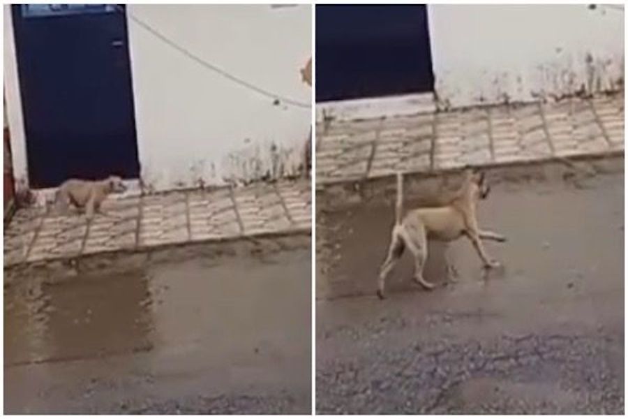 Os moradores se mobilizaram para salvar o outro animal, que apresentava sinais de vida, e utilizaram uma bengala de madeira para puxar o cachorro para fora da área eletrizada.
