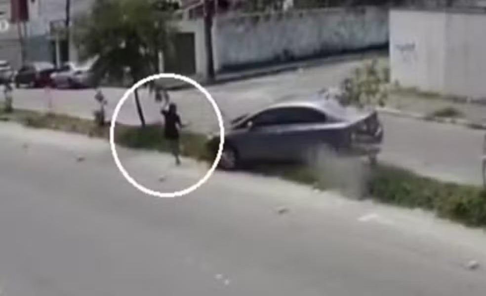 Com o impacto, a motorista do Civic perdeu o controle, passou por cima do canteiro central e atingiu a pedestre, arremessada.
