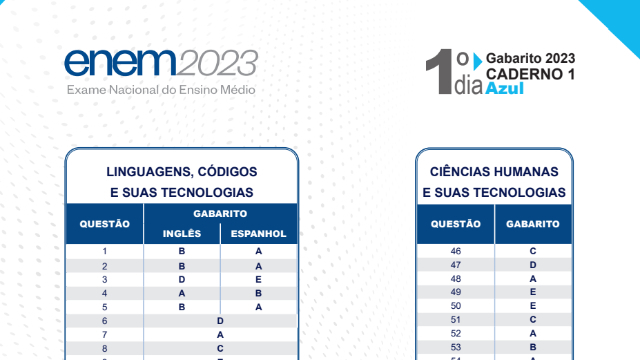 Os gabarito oficial dos dois dias de prova do Exame Nacional do Ensino Médio (Enem) 2023 foram divulgados na noite desta terça-feira (14). Os candidatos já podem acessar e ver seu desempenho da prova através do site do Instituto Nacional de Estudos e Pesquisas Educacionais Anísio Teixeira (Inep). Veja aqui.