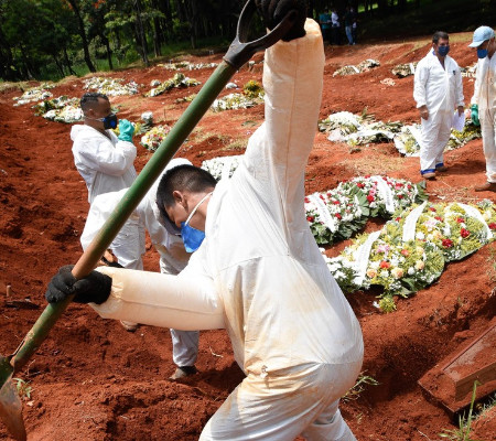 Com os novos números, houve uma redução na média móvel de mortes em sete dias: passou de 1.806 na sexta-feira (25) para 1.705 neste sábado. A média móvel de casos é de 71.878 ocorrências.