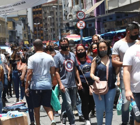 Região da Rua 25 de Março, famoso centro de comércio popular em São Paulo, teve aglomerações - Imagem: Renato S. Cerqueira/Estadão Conteúdo