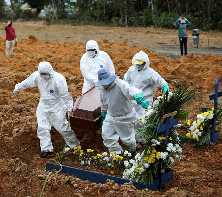 O Brasil registrou 790 mortes e 37.498 novos casos de Covid-19 em 24 horas, mostrou o boletim divulgado pelo Ministério da Saúde na noite desta segunda-feira (24). O total de óbitos chega a 449.858 e o número de infectados subiu para 16.120.756 desde março de 2020.