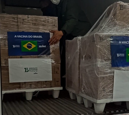 O Butantan informou que no último dia 19 recebeu nova remessa de 3 mil litros do Insumo Farmacêutico Ativo (IFA), matéria-prima importada necessária para a produção de novas doses da vacina contra o novo coronavírus.