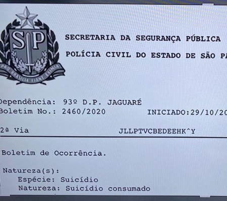 Um boletim de ocorrência foi registrado às 16h02 do dia 29 de outubro em uma delegacia da Zona Oeste de São Paulo. A Polícia Militar foi acionada e encontrou a vítima desmaiada com com uma seringa perto do braço e diversas ampolas.